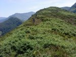 La ruta elegida fue en un primer momento el Camino de Santiago que va a Finisterre hasta el kilómetro 45, donde vi un indicador de Muros, pero al ver que eran las 11:30 decidí continuar un poco más hasta llegar a un pueblo llamado Hospital. Allí pregunté a una señora que amablemente me indicó dos rutas, una de ellas por costa y otra por interior. Me decidí por la segunda, que ya había sido recomendada anteriormente por nuestro compañero, pero era muy dura, y al ver que tenia tiempo me decidí a descender hasta el mirador y la presa de Ézaro, donde aún me faltaban 25 kilómetros. Comí lo que me restaba para subir al monte Pindo. Y... *****, menudas subidas. Y a partir de este punto comenzó un rompepiernas. En un pueblo tuve que parar a pedir agua a una señora, ya que yo me quedé sin nada a causa del calor, le pregunté cuánto me quedaría y me dijo que 20 kilómetros interminables y al llegar al siguiente bar me tomé 2 Cocacolas que me sirvieron para reponer fuerzas para alcanzar mi meta. Despúes de una subida inteminable llegó una bajada muy rápida que me llevó directamente a Muros.