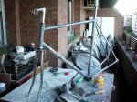 bueno...como no encuentro un eje de pedallier que encaje (tampoco lo he buscado mucho)..la dejo a mitar y le meto mano a otra. una orbea.. la pintura estaba muy picada y oxidada...asi que la he decapado