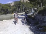 Seguimos ruta y empezamos a subir por la pista, primero en dirección Rabosa y luego girando para ir hacia Catí. Nos separamos un poco, siendo los de Guardamar y los Tricks los que comandan expedición, junto con biker y Skull. Me doy media vuelta y veo a Ramonxu subir solo y no veo a Toni ni a Alexis. Todo hay que decir que no subimos en modo Xc, pero si se sube con cierta alegría. Pensando en que son 14km muy duros de subir, decido ir con Ramon en plan mas o menos tranquilo, hay que reservar fuerzas. Toni y Alex a su bola per darrere.