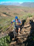 Por otra parte tengo el placer de comunicarles la apertura de una "nueva vía" para bajar desde Cortadores hasta el mismo Tauro. Una vía llena de piedras y que le dá mil vueltas a la antigua bajada por la pista. Al principio hay que caminar un poquito para remontar la montaña, pero luego se llega a bajo en un par de soltadas de freno. Creo que la ruta se queda algo más corta, pero gana en calidad e intensidad. Las fotos que les voy a poner corresponden casi todas a la subida con Danielteam de modelo y los videos ilustran la bajada "fonolítica" con la tierra totalmente empapada de agua. La isla se nos está poniendo hermosa aunque tengamos que aguantar el mal tiempo.