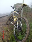 tras las ultimas lluvias , esta el campo.......................lleno de barro......jajajaja se aprecia la niebla era intensa de ******* Aqui el compañero...jajaja es una cadera de vaca cualquier sitio es bueno para lavar la bici....