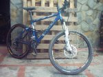 Pues aqui os presento mi Fuel 90 SLR del 2001,compre el cuadro de 2ªmano a un forero,le puse la reba team 2006 y sillin nuevo,el resto son componentes con mas de 10 años aunque por ahora me va bien,más adelante cambiare bielas y ruedas.