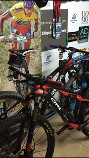 Enseguida la reconocí; el pulsador del cambio era SRAM, cuando todos los componentes eran SHIMANO (Chiquibike me lo puso porque el original me daba problemas), sillín PRÓLOGO X-10 y puños rojo/azul (un recuerdo de una buena amiga), portabidón metálico acceso lateral, correa de plástico atada a cableado del manillar (la puse para que no me estorbara el dorsal en las carreras), cubiertas con las letras MAXXIS en color blanco, cuando llevan un tiempo siendo de color amarillo (esas cubiertas las tenía yo hace años) y algunos detalles más......hacían que no tuviera ninguna duda de que era mi chiquitina!!!!