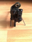 Patilla de titanio aligerada y lista para colocar,es más el cambio estético que el de peso ( algo más de un gramo de rebaja),pero es un cambio nuevo para hacer más exclusivo el próximo desviador, respecto a la comparativa con las patillas en carbono en 1'5mm. y 2mm. de espesor sigue estando éstas por debajo del peso de la de titanio rebajada ( Fotos 112 y 113 ),ahora toca montar el conjunto del cuarto desviador.