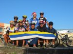 Estimados todos, habituales y visitantes del Maki's Team Post. Se nos va 2005, y la mejor forma es despedirlo como mejor sabemos: pedaleando. Nos congregamos a eso de las 8;30 de la mañana nueve personajes dispuestos a todo: Maki Klein, Iron Maki, Yeray, Meloki, Juan y su hijo Cristian, Fernando (aguimes) hijo y su padre de igual nombre, y yo. Una mañana apetecible pues el tiempo había mejorado bastante, teniendo en cuenta los días anteriores. Decidimos subir por tierra y se nos unió un décimo no de lotería sino del grupo: León. La subida un poco dura, hasta tal punto que Juan partió un tornillo de su amortiguador :malaleche, pero :scratch afortunadamente estaba la Ferretería "El Toscal" abierta para él. LLegamos pronto al pueblito de La Pasadilla desde donde bajamos entre verdes prados y caminos de tierra, aún húmeda por las recientes lluvias, hasta el municipio de Telde. Tan húmedo que Ono Iron Maki decidió refrescarse revolcándose con su bici en un maravilloso aterrizaje. Desde esta localidad volvimos a disfrutar de una bajada por barranco :drive llegando hasta la costa en el conocido LLano de las Brujas donde quedamos todos embrujados por lo rica que estaba el agua. Luego una paradita para disfrutar el momento, en la "garsolinera" de la pista. Meloki aprovechó para "marcar su territorio" smoking como siempre. Allí se despidieron los dos Fernandos. Recorrimos toda la costa de Telde dirección sur, pasando por el polígono industrial de Salinetas y bajando al barranco de Silva. Allí, bajo la autovía Las Palmas-sur siempre he sentido algo especial, quizá por lo enorme de las estructuras y lo pequeños que somos, pero da igual, la ruta nos lleva a Tufia, lugar donde se encuentra un extraordinario yacimiento aborigen y de ahí ya directos a Las Majoreras (Carrizal de Ingenio), dejando el Aeropuerto de Gran Canaria a nuestra izquierda, pero ningún avión nos quiso llevar. Entonces, maki klein ya se sentía de las cervicales y tuvo que parar con el fin de virar su cuello al revés y así sentirse mejor. Desde ese punto, una subidita a modo de colofón para finalizar subiendo por lo que será la nueva circunvalación de Carrizal - Ingenio - Aguimes que lleva posponiendo la fecha de finalización desde 2004. Finalmente llegamos a Ingenio todo por tierra. uf uf uf, y como no, nos esperaba la brillante aportación del Makis Club de Abstemios Anónimos (MCAA) con el turrón de navidad y la sidra para celebrar nuestro particular Fin de Año, :vino :chinchin :vino :chinchin con cotillón. Mención especial tiene Cristian :clap, un pivito del que esperamos mucho, pues resistió los casi 53 duros kilometros sin una queja ni un resoplido.:-D Felicitar al equipo Maki :rally por insistir en la "Ruta de fin de año" y agradecer la asistencia de los restantes. La próxima ruta será el año que viene, el siete en Arucas. Las imágenes también porque me largoooooo de parrandaaaaaaa :banda Meloki, aporta tú los datos de duración, kilometraje, desnivel, etc que te enrollas más jeje.
