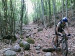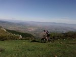 Ya Luisaña y yo solos nos ibamos para arriba del moncalvillo, ya empezaba a azotar el sol y la subida por el camino de castañares no da tregua y se hace eterna.... arriba senda de las neveras, la verdad, es que se nota que esta pisada de narices, restandole dificultad técnica, que ya solo se reduce a alguna piedra, eso si, la senda no te deja descanso, ya que tienes que estar atento todo el rato a la trazada, ya que las piedras no son pequeñas, llegados a los escalones, para abajo y sin rechistar, la verdad que no me resulto dificil, el miedo hace mucho, y en mi caso, me lo quito la novia de ikki, jajaja...