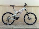 fotos si qie tengo solo que no se como se ponen, y es una talla m con ruedas xt frenos avid elixsir de carburo, manillar dh easton y tija easton de carburo los dos, bielas estylo cubiertas kenda nevegal de 2.1 y 2.23 cambios sram x9 y desviador x9 con mandos de puño xo, potencia sun line etc.:grin: