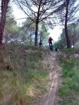 Como lo dices parece fácil y no lo es.Si "no te has enterado" es porque hicimos 40km en más de 4h ,en el primer tramo de sendero de 8km se tardó hora y media debido a las muchas paradas por los tramos ciclables que muchos hicieron andando,y alguna caida.Ese mismo tramo a 16 por hora(no es mucho) subiendo y bajando todo montado en la bici sin parar , si "se entera" uno,dureza hay, pero lógicamente depende del ritmo. Cuando vuelva a llover vente un día y la hacemos entera ó si tienes buenas piernas vamos a ver EL SENDERO que es una pasada y no tiene ni gota de arena. Esta es la buena técnica para bajar(culo atrás y sin blocar frenos) 2º cortado ,Rodrigo con su cona de 150 como si nada.
