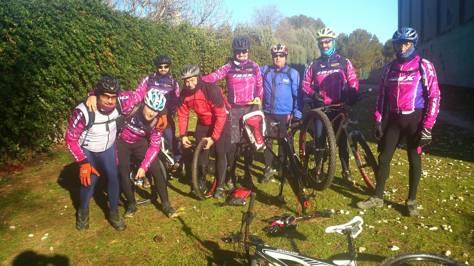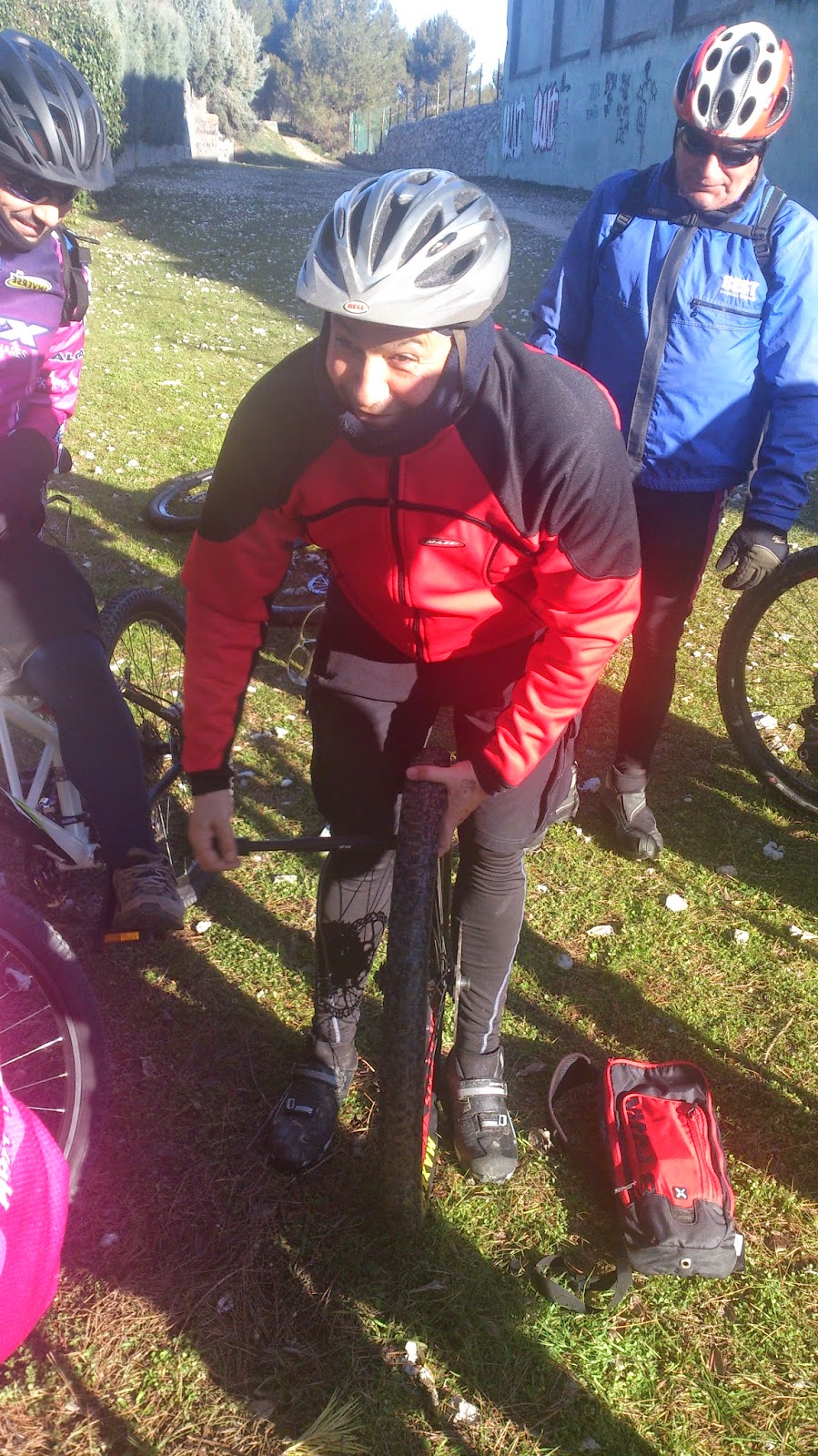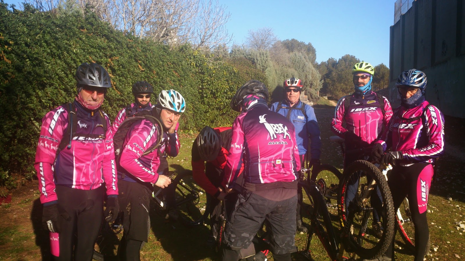 Vaya frrrrrrío!!! Me lío y me lío.....y no cuento lo que he de contar. Domingo, 8 de Febrero de 2015, ambiente gélido (-3 grados), cuando paso por el parque compruebo los chupetes que tiene la fuente dándome una pequeña tiritona; el aire corta el cutis y me escondo detrás de la braga, empañando las gafas con el vaho de mi respiración. Hoy llego el primero a la cita, llegando poco a poco el resto de los que vamos a hacer la ruta hoy: Ángel, Richart, Juanpe, Pastor, Chema, Nani, un miembro nuevo que hace hoy su primera ruta con nosotros, y que atiende al nombre de Juan Antonio, y un servidor y cronista, por el camino se nos une Jose Villalba, que como siempre, llega tarde y nos coje al vuelo, cosa que algún día le ha jugado una mala pasada, pues si salimos hacia el otro lado, como no sabe por dónde vamos y le sacamos unos minutos, no puede alcanzarnos. El inicio es el de casi siempre, ir hacia el Parque y subir por los sincasa, yo prefiero coger la pista por la carretera, ya que hace unas semanas me caí resbalando en el hielo, y con el frío que impera hoy no me fío. Me refiero a que el resto pasan por el lugar donde yo resbalé, y la verdad yo no estoy por la labor. Subimos los sincasa, con las primeras cuestas empezamos a coger calor y ya no sentimos frío en todo el día; calienta el sol, hay que aprovechar mientras las temperaturas siguen bajo cero para circular por senderos y zonas de umbría, pues el terreno está helado y duro, en cuanto suba un poco la temperatura estas zonas se convierten en impracticables. Entramos en la urbanización Peñas Albas por detrás, por la pista, yendo hacia Nuevo Zulema y atravesando la misma por lo que yo he venido a llamar la circunvalación, bordeando la misma al borde del pinar. En esta zona hacemos una parada por un pinchazo y hacemos las fotos de rigor para dejar constancia de la asistencia que teníamos planeado hacer todos los domingos, y que alguno se nos ha escapado, pero no pasa nada. Enfilamos por pista hacia Torres, bajando hacia el manantial, encontrándonos una zona muy pantanosa, en la que incluso hay alguna caída sin consecuencias. Atravesamos la zona y seguimos hacia Torres, todo pista, atravesando el pueblo y encaminándonos a lo que nosotros llamamos las trialeras de Torres, dos subidas y una bajada en medio de las dos que están de lujo, la última un poco más embarrada por efecto del sol. Más pista hasta Pozuelo del Rey y un poco más hasta llegar a la bajada de la cadena, que también está en perfectas condiciones; bajamos hasta la pista y cogemos dirección Torres, que bordeamos subiendo hacia el motocross, y luego bajando hasta Los Hueros, tomamos el camino de la Isabela a lo que nos dan las maltrechas piernas, la carretera de Villalbilla hacia el Gurugú, y entramos al parque por la bajada de los ewocks, que está bastante bien en su principio, pero a medida que vamos bajando nos vamos encontrando con algún susto en forma de charcos de barro traicioneros que casi me cuestan un revolcón y que sorteo con esa dosis de suerte que en otros momentos me ha faltado. En un tramo de cincuenta metros hemos puesto las bicis a caldo, las ruedas llenas de barro aunque se puede rodar fácil, pero hay que ir al lavado para librar de tan pegajoso elemento nuestras monturas; aquí me despido ya que se ha vuelto a hacer tarde y no me da tiempo a tomar la cerveza, que otros no perdonan. Y con ésto doy por terminado el suplicio de hoy, no lo digo por mi parte, que saliendo a montar en bici disfruto, con un poco de sufrimiento pero lo disfruto, sino por todo aquél que se atreva a leer lo que hemos hecho. Me han salido 50 kilómetros en 3 horas y poco.