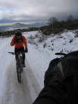 que puedo decir,UNA RUTA EXELENTE,salimos tres amigos ,alfons_oc-k2biker, y mass yoooooo,jejejeje nuca hemos tenido una ruta con tanta nieve y 100% ciclable,increible subimos el calvario por una pista de jabon,cojiendo los segundos senderos que salen a su derecha,nada mas pasar la primera curba,que guapo señores todo nevado 15,20 cm de nieve,pero se rula de maravilla,llegamos a la fonda real,donde por estar la zona muy destrosada,cojimos un tramo de carretera por fin llegamos a los senderitos,todo nevados a tope se rula como nunca,ya llegamos a la parte baja de los montones,donde alfonso comenta que se llaman asi por los montones de gente que se queda en el camino al subirlos,juas juas juas,empieza la subida los rampones con poca nieve,en algunos tramos de hielo hay que poner pie,pero se suben sin problema,llegamos a los pies de la maliciosa,donde cojimos el camino del rio para llegar a el hotel de la barranaca,las lagunillas estaban congeladas por las bajas temperaturas,despues de subir la pista la cual nos costo lo suyo llegamos a la senda ortiz Dios mio como se subia,les comento que parece que nos prepararon el terreno para nosotros porque estaba de lujo,que bonito esta todo,llegamos al primer mirador,donde comimos algo,por supuesto le di a degustar mi posima majica a alfonso jejejeje,el te con brandi y unas galletitas de chocolate que bueno,enfilamos rapidamente por el bambi,bajando por nuestra propia trasada jejeje como de baja estamos todos soprendido de lo bien que se va,que manera de difrutar con la nieve,llegamos al ventorrillo,donde cojimos la del susto que pasada no hay piedras bajamos con mucha precaucion,donde nos desviamos hacia la fonda real para cojer mass senderos y plantarnos en cerce muy contentos con mass menos 3,30 hrs de bici,gracias alfonso y jose por estar aqui
