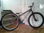ahí les va: lo único que desentona es la rueda delantera, pero bueno, es pa' darle caña hasta que a guante... horquilla black market tech9, potencia y manillar el gallo sangre, buje trasero leafcycles y llanta el gallo, freno avid, etc... mi preciosa Saracern de aluminio (ahora con pike, pronto fotos) ya tiene una hermana de acero!