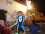 Bueno compañeros ya estoy por aquí¡¡¡ Entre pomaditas y recuperación de tiempo perdido con la family no he podido antes, Crónica de una extraordinaria noche: Allí si presentaron a eso de las 9:30 de la tarde-noche 8 jinetes con sus correspondientes monturas, todos expectantes que apareciera el Sr. Juanin ya que sabíamos que en algo nos tenia que sorprender, EXACTO¡¡¡ la verdad es que nos lo podía haber dicho y así ahorrarnos el comprar 2 paquetes de pilas alcalinas, hace acto de presencia con dos FOCOS de los que llevan los 4x4 en el Dakar, no alumbraban, deslumbraban¡¡¡ que barbaridad con que claridad se veía durante el recorrido (yo quiero uno de esos) y después estaba el lado opuesto, nuestro amigo Juanma con su luciérnaga de mano jajaja, la verdad es que tuvo mucho merito ya que hizo la mitad del camino con una sola mano, ya que la otra la tenia ocupada recargando la linterna jaja hasta que a la vuelta con el dopaje en el cuerpo termino hecho trizas jajaja. En fin comenzamos el camino de ida y cada vez se fue haciendo de noche y todos mirábamos a nuestro amigo Traka, si ese señor Perito Agrícola que fijo el día de la nocturna por que había luna llena, pero llena que estaba, la noche estaba cerrada, cerrada, así que pronto tuvimos que hacer uso de los focos de Juanin y de Gabri para iluminar nuestro andar. Al ser todo tan oscuro tiene su intríngulis, ya que muchas veces no atinábamos bien en calcular por donde íbamos y sobre todo en las cuestas ya que no se veía su terminar jaja, en fin el camino de ida fue estupendo, un ambiente de lujo y disfrutando de la noche, fotitos por aquí, fotitos por allá y llegamos a espera sobre las 11:30 de la noche, no sin antes, como es lógico con nuestra típica subida al Castillo por la parte del cementerio y posterior bajada por el zigzag estrenando el recién asfaltado de la misma (hormigón preimpreso). Una vez llegado a espera nos dirigimos al punto de avituallamiento, Casa Gabriel, y como no un buen recibimiento de su propietario el cual nos volvió a tratar como marqueses, previo pago claro, cervecitas, tintitos, refresquitos, y venga comida, que atracón de comida, una vez los buches llenos había que tomarse algo para hacer la digestión y hay fue donde empezó .., un chupito no, el hombre nos puso 3 botellas para que se sirviera el personal y que os voy a contar que no sepamos, uno,dos,tres y hasta cuatro y después aún no estaba muy bien la digestión así que 3 pelotazos para culminar, todo esto entre risas y risas, gran culpa de ellas de nuestro amigo el Largo de Lebrija el cual nos dio un recital de lujo jajaja En fin una vez ya con la digestión bien realizada montamos en las monturas de las burras con más de una risa floja que otra y viendo venir quien iba a ser el primero jeje, y hay tuve el orgullo de ser un servidor, emulando a nuestro gran amigo Kata mi jaca vio un ratoncillo y dio un brinco el cual no pude controlar muy bien, vamos que me fui al suelo intentando hacer un giro de 360º quedándome nada más que en 180º jajaja total quedo en anécdota y de nuevo en lo alto de la burra y para el cuervo, eran ya sobre las 3 de la mañana (la cena fue muy larga jajaja) En fin el camino de vuelta más de lo mismo, risas, risas y más risas y un ambiente de lujo, alguno que otro probo los jaramagos de las cunetas, se perdieron algún que otro calcetín por el camino, algunos se caían con la bici parada en fin un espectáculo, al pasar por nuestra ermita su correspondiente parada oficial (un poquito más y les hago rezar un rosario jejeje), lo que si pasamos fue mucho calor durante el recorrido, sudamos como cochinitos sobre todo al ir para espera, al final llegada al Cuervo sobre 5:40 de la mañana. En definitiva otra gran NOCTURNA, desde aquí agradecer a Traka, Juanin, Gabri, Alfonsito, Celu, Largo Lebrija y Juanma el rato tan magnifico que pasamos y a contar los días para la III NOCTURA DE LA PERGAÑA, por cierto para el año que viene se barajara la posibilidad que alguno que otro comento (quedarnos en Espera a pasar la noche) y así evitar males mayores jejeje. Bueno ya esta bien de cháchara y os dejo las ansiadas fotitos, ya que dicen que una imagen vale más que mil palabras. Nos vemos en los carriles .