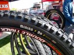 nuevas minion f con laterales reforzados, 830gr en carcasa simple: - Maxxis unveiled their new DHf freeride tire alongside their new EXO casing technology to toughen up the sidewall for better rip and pinch flat protection. The DHf takes their popular downhill tire, lightens it up and makes it ready for the freeride crowd. It weighs in at 830g and uses a single ply casing (versus double for DH models) and gets the EXO sidewall protection. Its available both as a single compound 60 durometer version and a triple compound model. The triple gets a 70 duro base layer for solid rolling resistance, which creeps up into the base of the knobs, with 60 center knobs and super soft 50 side knobs. The higher the number, the firmer the rubber. The firmer the rubber, the more efficient it is, while softer rubber grips better but has slower rebound.