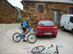 Bueeeeeno, pues RUTÓN que nos hemos marcado hoy Erikdraven y un servidor. 1600ypico de desnivel positivo acumulado, 45km, subidas bestias, bajadas aún más bestias... Por cierto, las velocidades que se ven en el perfil, no son las reales nuestras, son las del track que les pillé a los de "La badana". Mil gracias a esa gente tan maja!!! Salimos a las 8 de Valladolid, a las 10:15 ya estamos saliendo de Manzaneda montados en la bici. En el km 4 (maomeno) Erik pilla una rama que le descentra la llanta y le deja el cambio trasero a 2 pasos del cementerio. Decidimos seguir y que sea lo que Dios quiera, con Erik soltando el cable del freno trasero en las subidas y poniéndolo en las bajadas. Llegamos a la 1ª subida, de unos 10km de nada (os dejo el perfil por aquí), lo único que puedo decir es : durísima, sobre todo los 3 km últimos, que son una salvajada (J@bi sabe lo que digo). Una bajadita molona, de unos 8 o 9km, y paramos a comer algo, que falta hacía tras la burrada aquella. Cogemos agua y hala, a seguir. Tramo de carretera, que aprovechamos para ir suave y volver a entrar en calor, pero eso sí, siempre picando hacia arriba. Nos desviamos para coger pista, y empezamos la 2ª subida, que empieza muy suave, sigue suave y nos mete en una pista que es un pedregal, donde la Heckler trabaja que no veas y me evita una buena paliza. A Erikdraven no se la evita. Seguimos subiendo, y de pronto aquello se empieza a empinar, así que a apretar los dientes y palante. A Erik le da un tirón, se tumba, estira un poco y seguimos subiendo. Como a 2km de llegar arriba, Erik se da cuenta de que tenía el freno traser puesto, lo que le iba frenando en tooooooda la 2ª subida, así que OLE TUS WEBOS,TÍO!!!!! porque subir aquello con la rueda frenada se las traía, eh?. Bajadita corta (3km de nada) y ascensión final, que nos lleva por las faldas del Teleno. Era la típica subida con un par de "zetas" que cada vez que las pillábamos, pues a morir. Cuando coronamos (el Teleno no, claro), empieza la bajada, que a partir del km 38, es una auténtica gozada : empinada, con pedruscos, algún salto de medio metro...aquí he probado la bici bien. Llegamos a Pozos, y descubro que he pinchado la rueda trasera (el líquido del tubeless casi seco). Cambio de cámara, y a Manzaneda otra vez, acabando en subida (corta, pero, coñe, que llevábamos ya lo nuestro). Luego pingo las fotos...