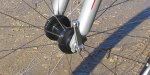 El problema es que a torsión están sometidas todas las ruedas, tanto longitudinal como transversal, porque una bici con V frena la velocidad radial de la llanta (lo cual es infinitamente màs eficiente que lo que hace un disco), pero la inercia de la bici empua ambos bujes hacia delante. Ahí está el par de torsión que tienes que neutralizar. Aparte delas torsiones laterales y diagonales.