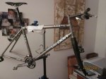 Va cogiendo muy buena pinta! Si que es cierto que la horquilla hace un poco raro al ser más gorda que la dirección, pero si lo disimulas un poco, una vez montada no cantará. A mi las fundas blancas si que me gustan, en los cuadros de titanio con letras grandes blanca quedan molonas!