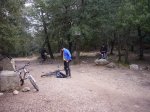 La bajada divertida, rápida, esquivando montañeros, cazadores y coches, sin ningún problema técnico, exceptuando el pinchado de Flo, y donde cada uno intento sacar el máximo provecho de los quilos de bici que tanto le había costado subir al coll.