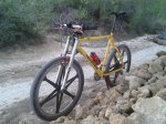 muy bonitas como todas las cannondale que salen por aquí, después de 5 meses sin sacar la amarillita a rodar, ayer me anime y de paso probar los nuevos cambios que le he hecho principalmente los cambios han sido bielas middleburn y manillar itm a juego con la horquilla.