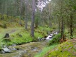 Ahora toca bajda hasta la pista por un "resbaladizo" sendero que discurria paralelo al arroyo del Telegrafo. Quizas sea uno de los sitios mas bonitos en los que he estado con la bici...maravilloso, ademas he aprovechado para lavarme los pies en agua fresquita que buena falta les hacia :risa. Luego subida por la pista..bastante dura... a ritmo "trankilo" hasta llegar al puerto de la Fuenfria. Desde aqui solo nos quedaba bajar a Cerce. Marichiva es el lugar elegido. Tras un primer tramo muy empinado en el que lo paso mal llega mi mejor momento del dia...que bajada, increible. Empalmo tramo tras tramo sin echar pie a tierra, y cada vez voy cogiendo mas confianza hasta que llega un momento que me doy miedo a mi mismo de lo rapido que bajo O_O..jeje. Bajar por terreno humedo era mi asigantura pendiente y creo que hoy la he aprobado con nota :p.