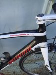 Bicicleta completa. Cuadro Carbono Élite SL2 2011 con geometría granfondo o cicloturista con inserciones zertz que aumentan el confort para marchas largas. Grupo Shimano 10 V Ultegra con platos ovales Qrings y bielas Rotor agilis compact 50-34. Casette 12-30. Pedales look keo 2 max. Ruedas Mavic ksyrium élite. Cubiertas continental 4000 sII. Sillín specialized Toupe en rojo. Tija KCNC roja. Potencia Sworks. Portabotellas de carbono. El cuadro es el original con recibo y garantía de por vida. El resto de componentes se han ido añadiendo con la constantes mejoras a las que se ha sometido. Talla 52 (para tallas de ciclista 1,65-1,73 cm) Peso unos 8 kg Preciosa y cuidada. 1150€ Con envío incluido Estamos en Madrid Gracias