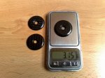 Ya están estas cinco terminadas y con el peso de cada una en la balanza,que va desde los 3'15g. máximos a los 2,77g. sin barnizar baja un poco más ,una de ellas ya la he puesto en la Ditec 4.1 junto con uno de los tornillos que hice en carbono,