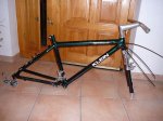 "Fuselage" Klein Pinnacle del 92: incluyendo cuadro, horquilla Manitou 1 (funciona, aunque es lo único a restaurar cambiando elastómeros), dirección, conjunto potencia/manillar Klein MC1, eje pedalier Klein de rodamientos y desviador y cambio trasero XT 737. Es repintada pero está muy bien acabada. La tipografía es perfecta. El color es muy bonito ya que cambia de verde a morado y a azul marino en función de la luz. Medidas del cuadro: Tubo horizontal (medida en horizontal virtual): 565 mm Tubo sillín (centro - centro): 380 mm Tubo sillín (centro - extremo superior): 455 mm Distancia entre ejes: 1050 mm Potencia MC1: 150 mm / 5º PRECIO 400 € Una buena pieza para entrar en el mundo Klein de una forma muy accesible...!!!