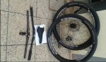 Buenas compañeros, aqui os detallo: cuadro de aluminio con amortiguador FOX FLOAT con tres posiciones Horquilla FOX CTD con tres posiciones y eje Q15 Transmision SLX con cambio trasero XT Frenos SLX Tija KCNC con sillin SAN MARCO ASPIDE ARROWHEAD( a estrenar) Ruedas KASPER, llantas FRM EVO, radios dtsupercomp, bujes KASPER, peso de 1.550, son tubeless, aunque yo uso camaras maxxlite y disco ashima ultralight de 180-160, cubiertas crossmark 2.0- sin pedales. el precio de esta bici son 1.400 euros y regalo los componentes originales sin estrenar, ver foto. Otra opcion, seria la bici totalmente original, con sus ruedas, tija, sillin, manillar.... por 1.000 euros. PORTES A CARGO DEL COMPRADOR Y LA BICI ESTA EN MURCIA cadena, cassete y pastillas llevaran unos 1.800 kms y la bici unos 5.500 Saludos