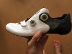 Buenos días chicos. Vendo estas zapatillas con dos meses de uso, con su factura, caja, tornillos para las calas a estrenar. Son la talla 47. Se me han antojado las de color negro. Las que vendo son las blancas. Pongo una foto de ayer que las llevaba puestas. Cuando esté en casa pongo fotos de la zapatilla en sí. Estan en perfecto estado. Las he usado muy poco, con el calor no me está apeteciendo salir. Las dejo en 265 envio incluído. Un saludo