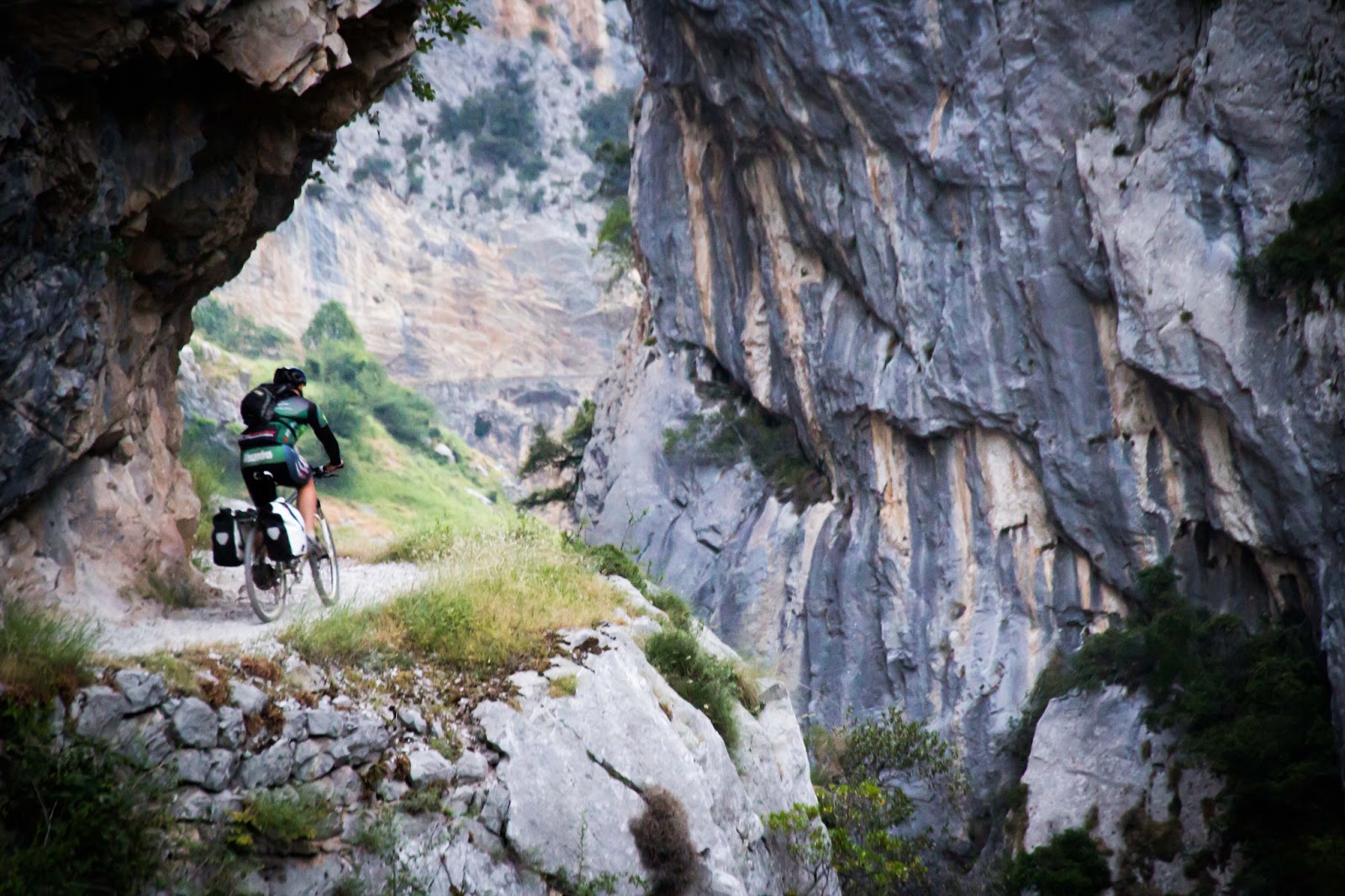 -Desfiladero del Cares y Acercamiento a Vegabaño por normativa hay que portear la bici. Y el desfiladero muy temprano para no molestar a los senderistas.